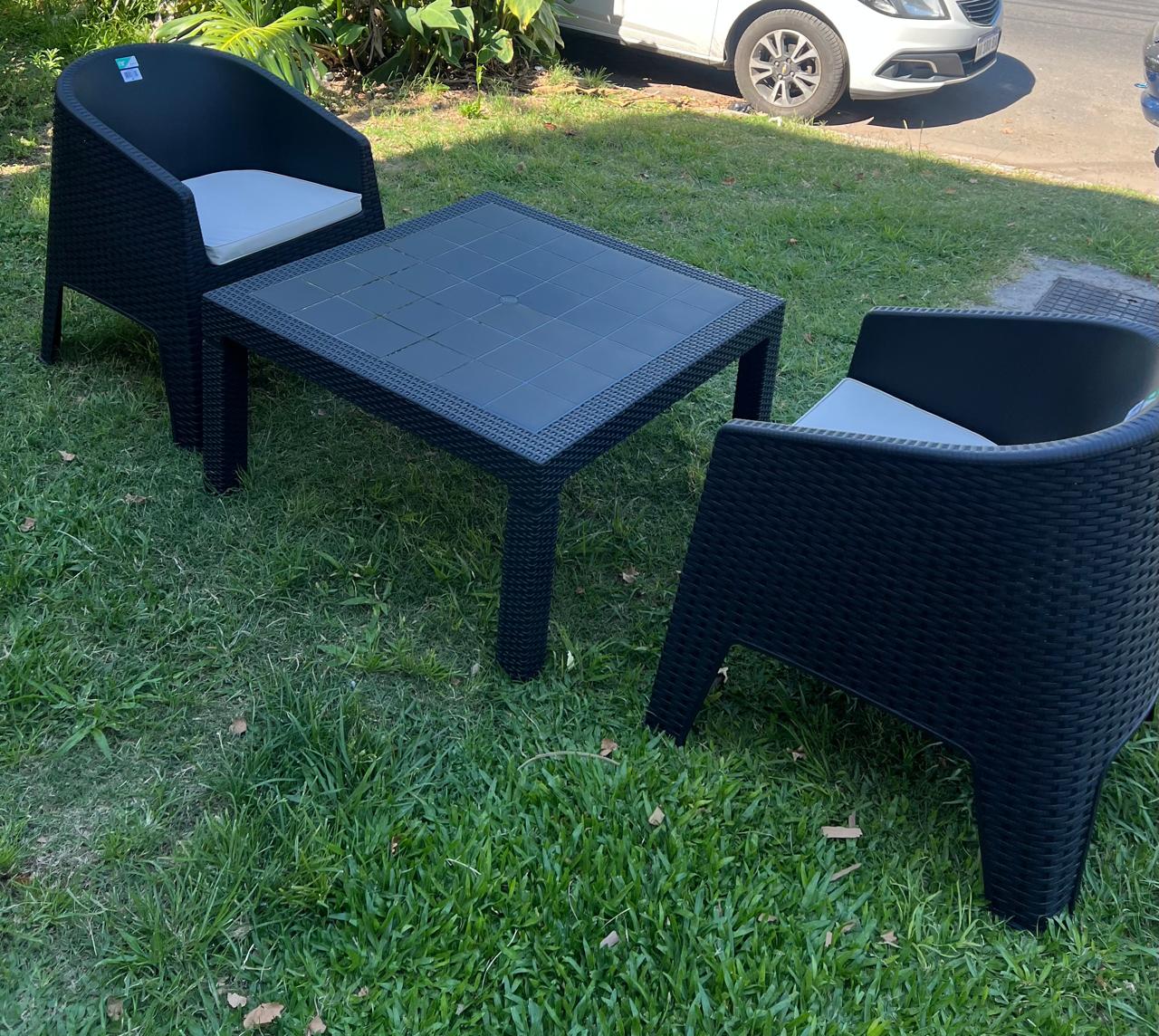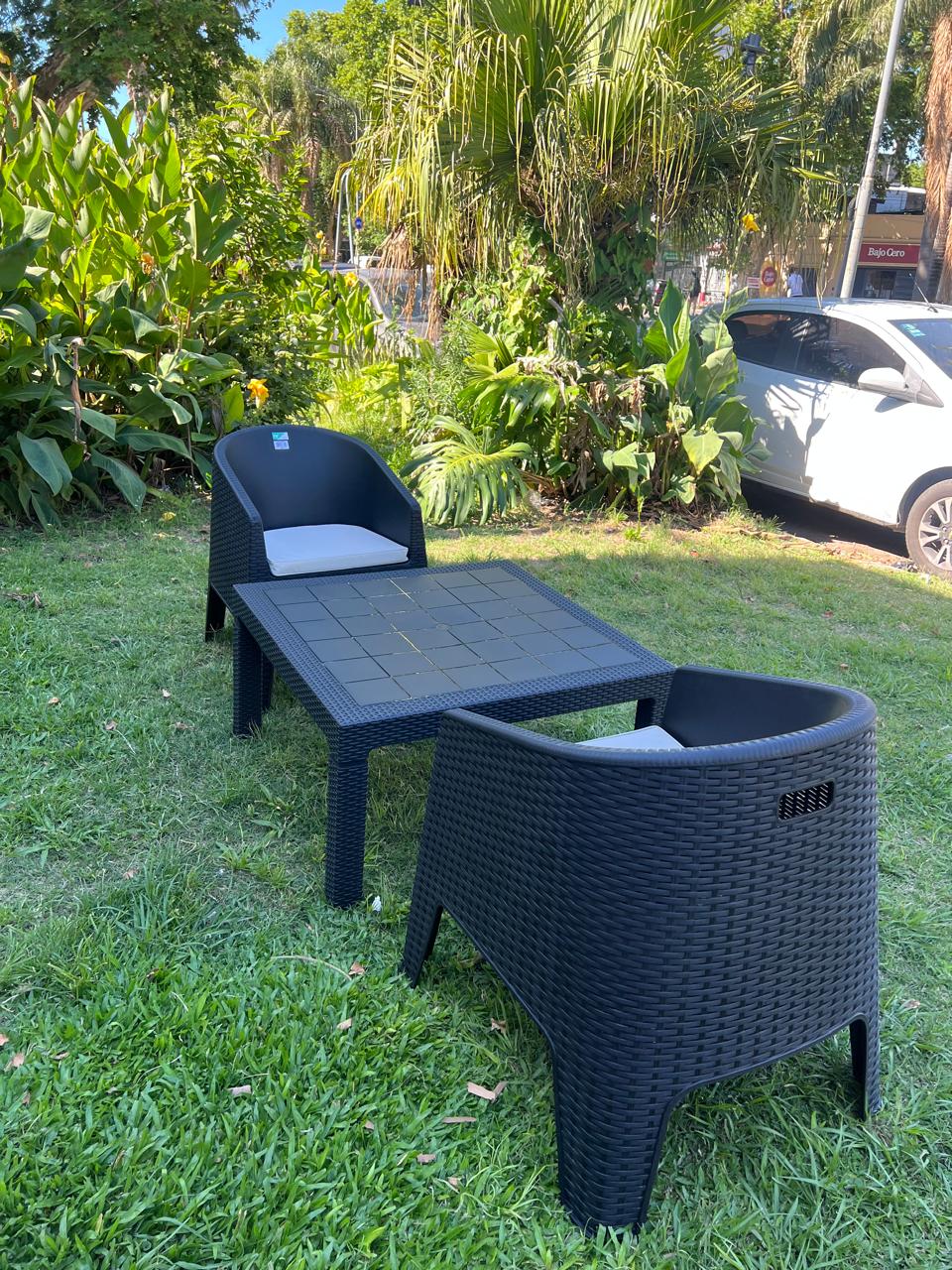 2 SILLONES OASIS CON ALMOHADON + MESA RATONA 90 X 90 CM