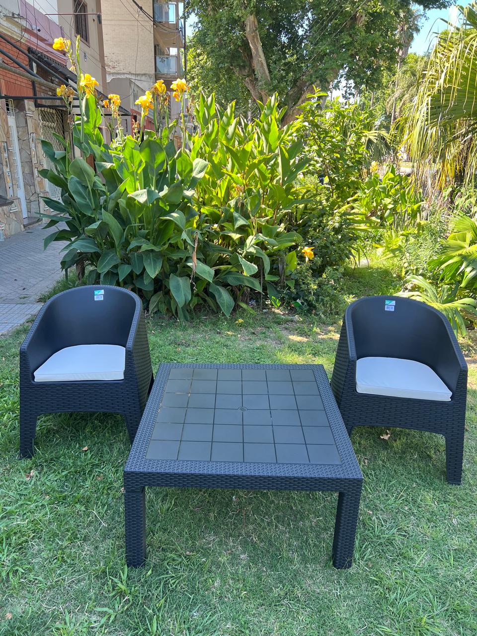 / 2 SILLONES OASIS CON ALMOHADON + MESA RATONA 90 X 90 CM