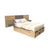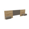 Respaldo ajustable a colchones de 1.40 a 1.60, viene con dos mesas de luz y cajones con correderas metálicas. Incluye soporte y tacos para colgar a la pared.
