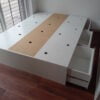 BASE COLCHON DE MELAMINA 15 MM CON PUERTAS CORREDIZAS , CAJONES LATERALES Y BAULERA