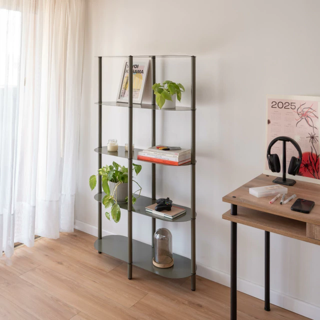 Diseñada para almacenar sin saturar, esta biblioteca es ideal para libros, objetos decorativos o incluso vajilla. Con estructura abierta y líneas verticales marcadas, combina liviandad visual con firmeza estructural. Su tamaño la hace perfecta para espacios medianos y pequeños, y al venir en cinco colores, podés hacerla protagonista o integrarla con sutileza.