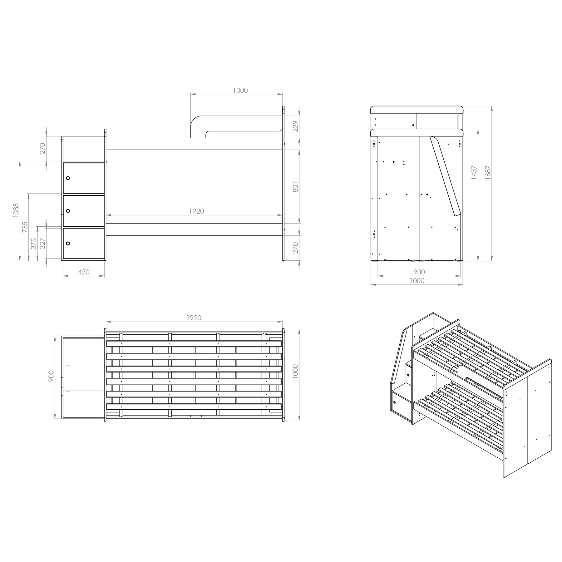 Cama Cucheta con Escalera Lateral. Armado Reversible.