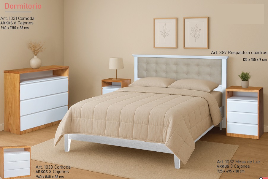 COMODAS / MESAS DE LUZ ARKOS PARAISO Y LACA BLANCA