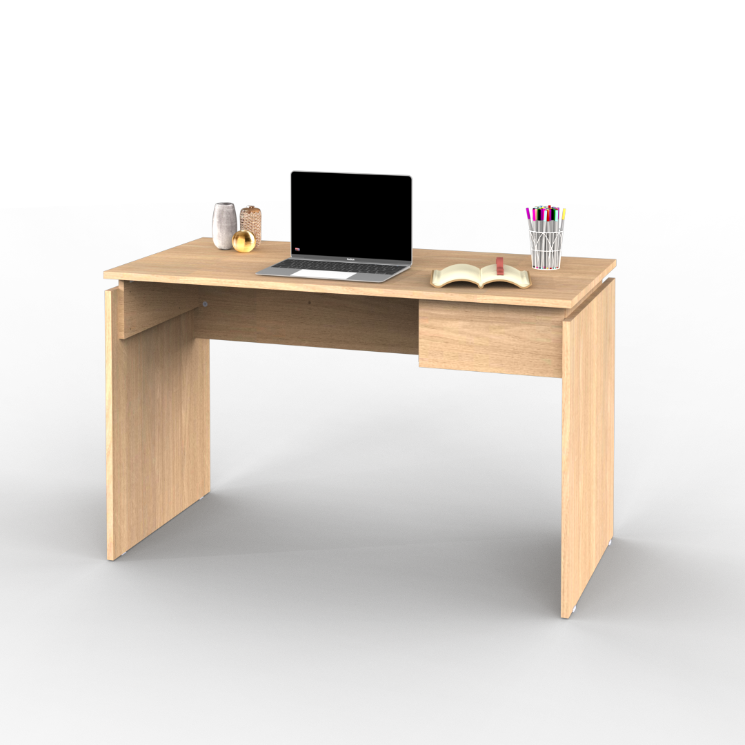 Es una mesa de trabajo de diseño sencillo, minimalista y funcional, el cual posee un cajon de buena capacidad de almacenaje acorde a un escritorio. Es un mueble moderno el cual crea un ambiente de trabajo ideal en donde no lo había. Este mueble viene desarmado y preparado para ensamblar de manera rápida y simple, por lo que dentro de la caja tenemos los correspondientes instructivos