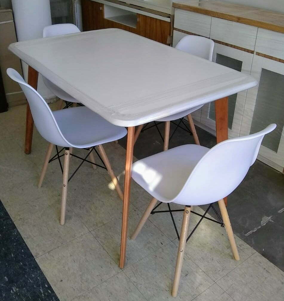 JUEGO DE MESA ESCANDINAVA CON 4 SILLAS EAMES BLANCAS