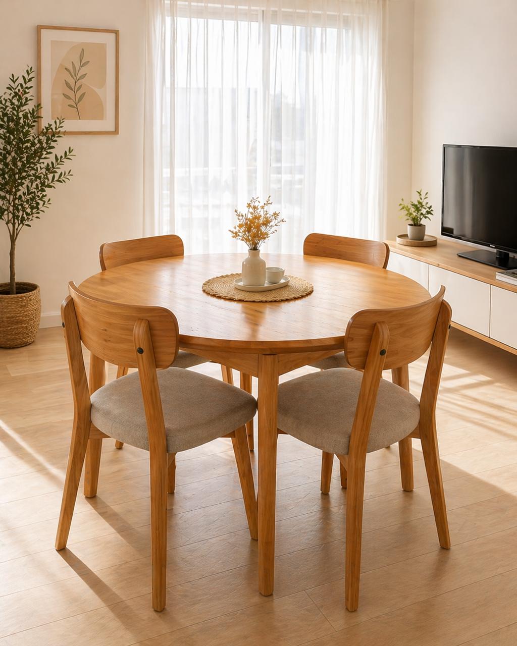 JUEGO MESA 1.20 M (OPCION EXTENSIBLE) + 4 SILLAS NORDICAS
