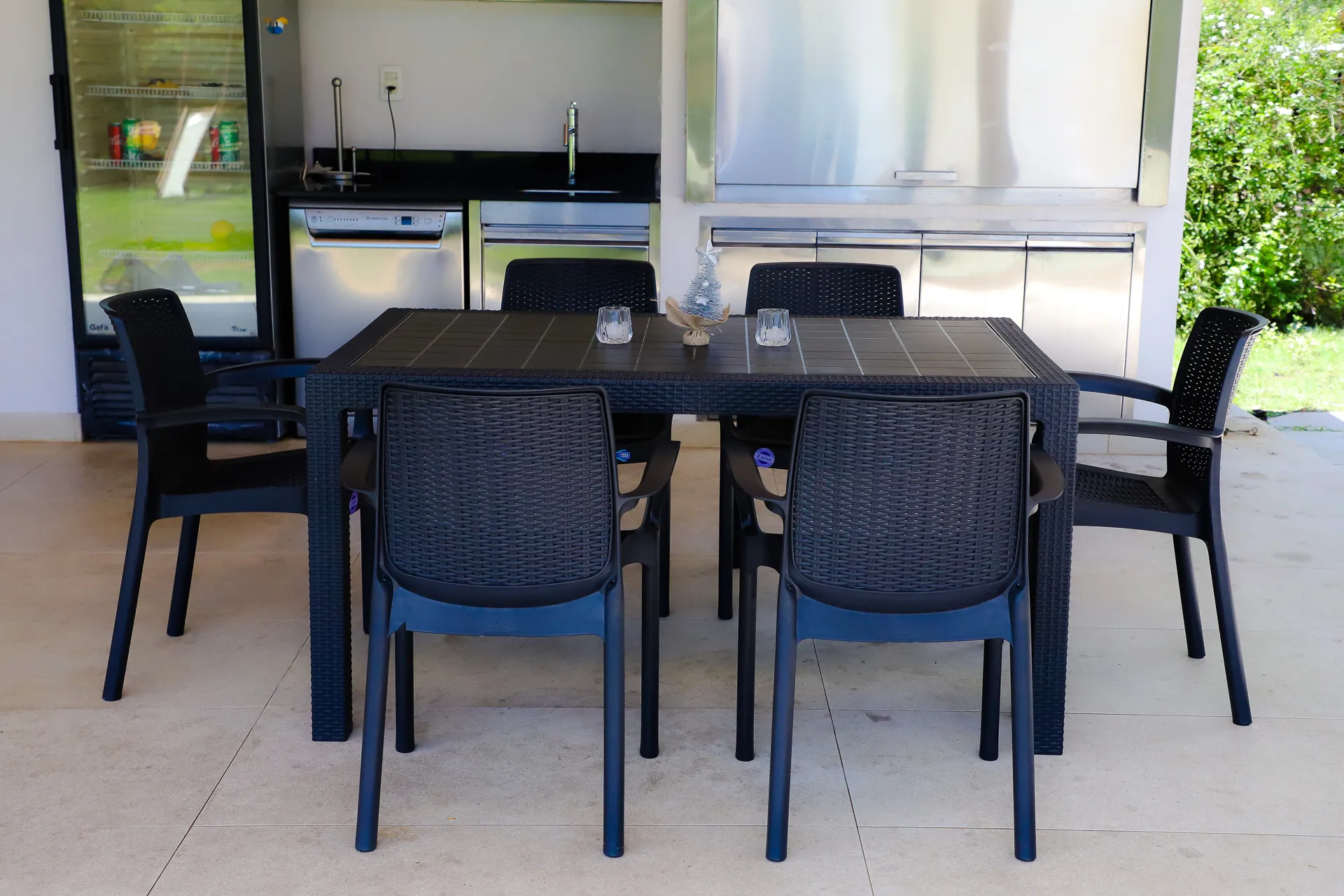 / MESA 1.50 + 6 SILLONES SIMIL RATAN GRAFITO