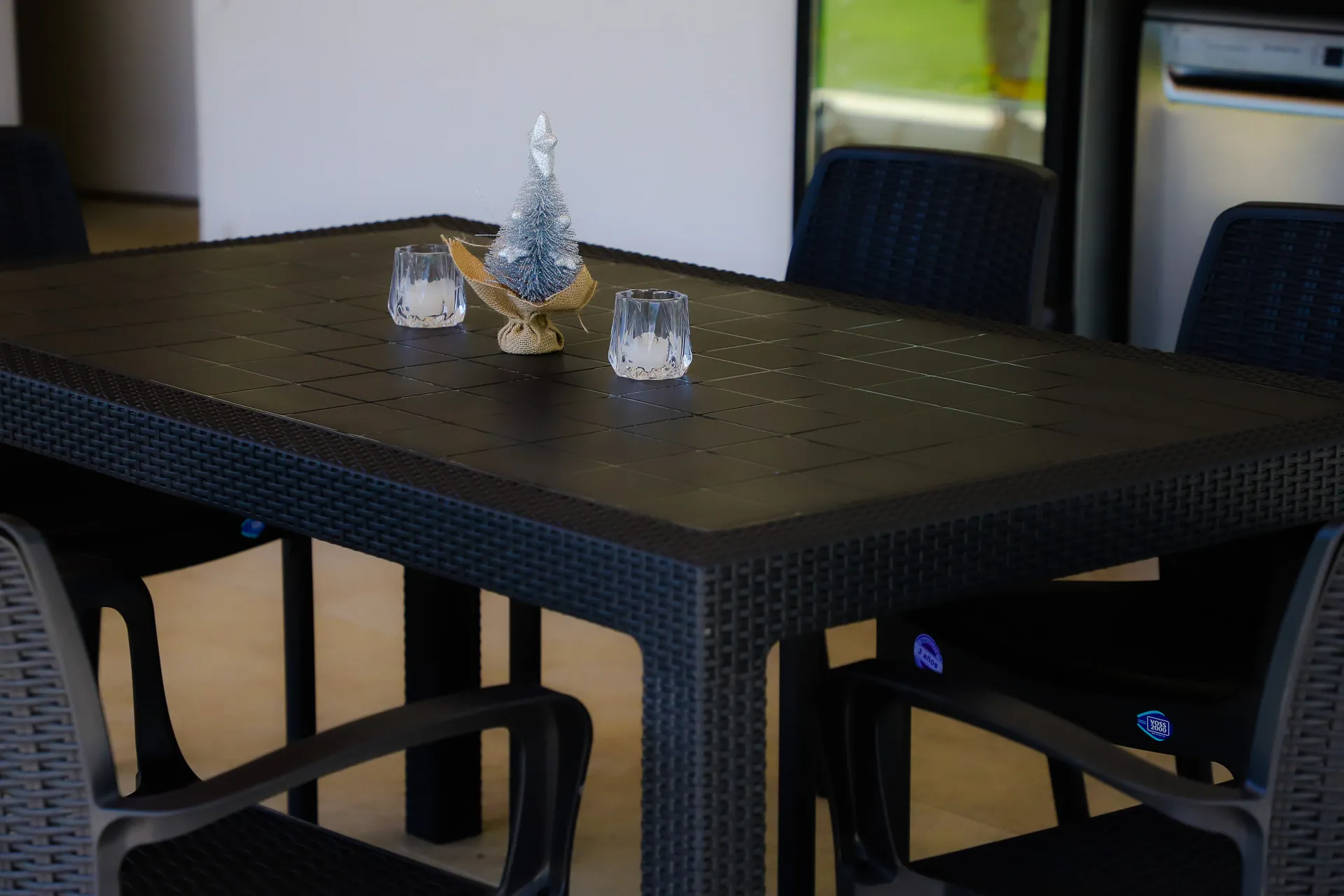 MESA 1.50 + 6 SILLONES SIMIL RATAN GRAFITO