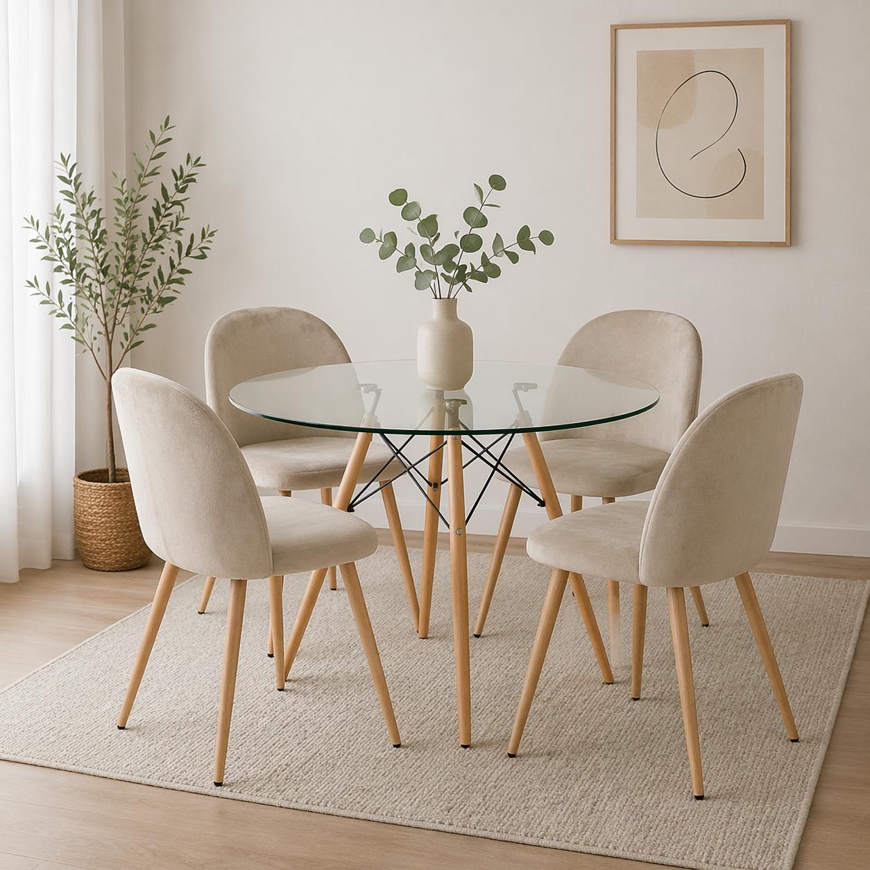 MESA DE VIDRIO 1 M + 4 SILLAS CLOE BEIGE