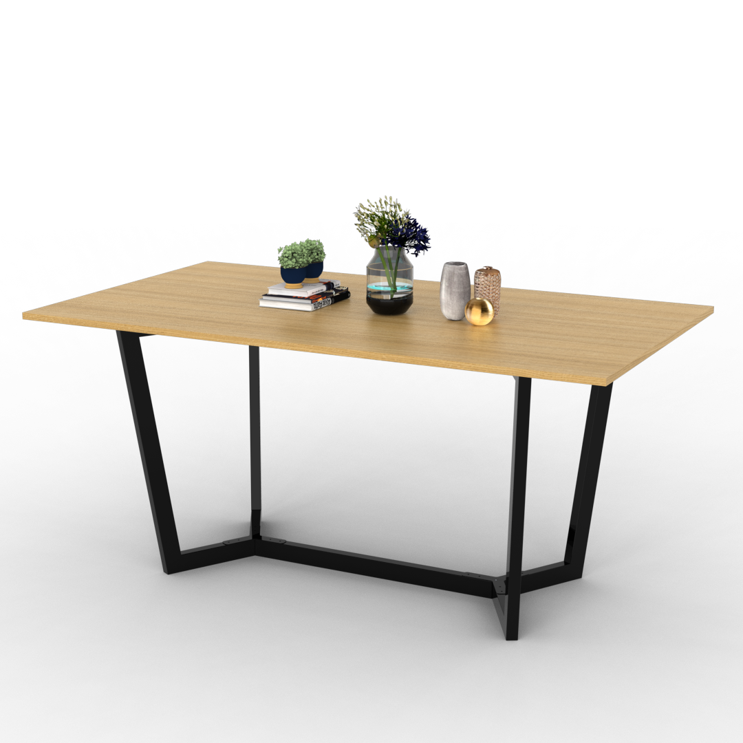 Esta mesa, con una amplia tapa de madera de 160cm x 90cm o 200cm x 100cm y una estructura de tubo negro, fusiona forma y función, convirtiéndose en el punto focal perfecto para tu hogar u oficina. Consta de dos marcos conformados por dos patas que le dan un estilo único y moderno. La estructura brinda una gran resistencia al peso y sus largueros proporcionan estabilidad, haciéndola una mesa estable y resistente.