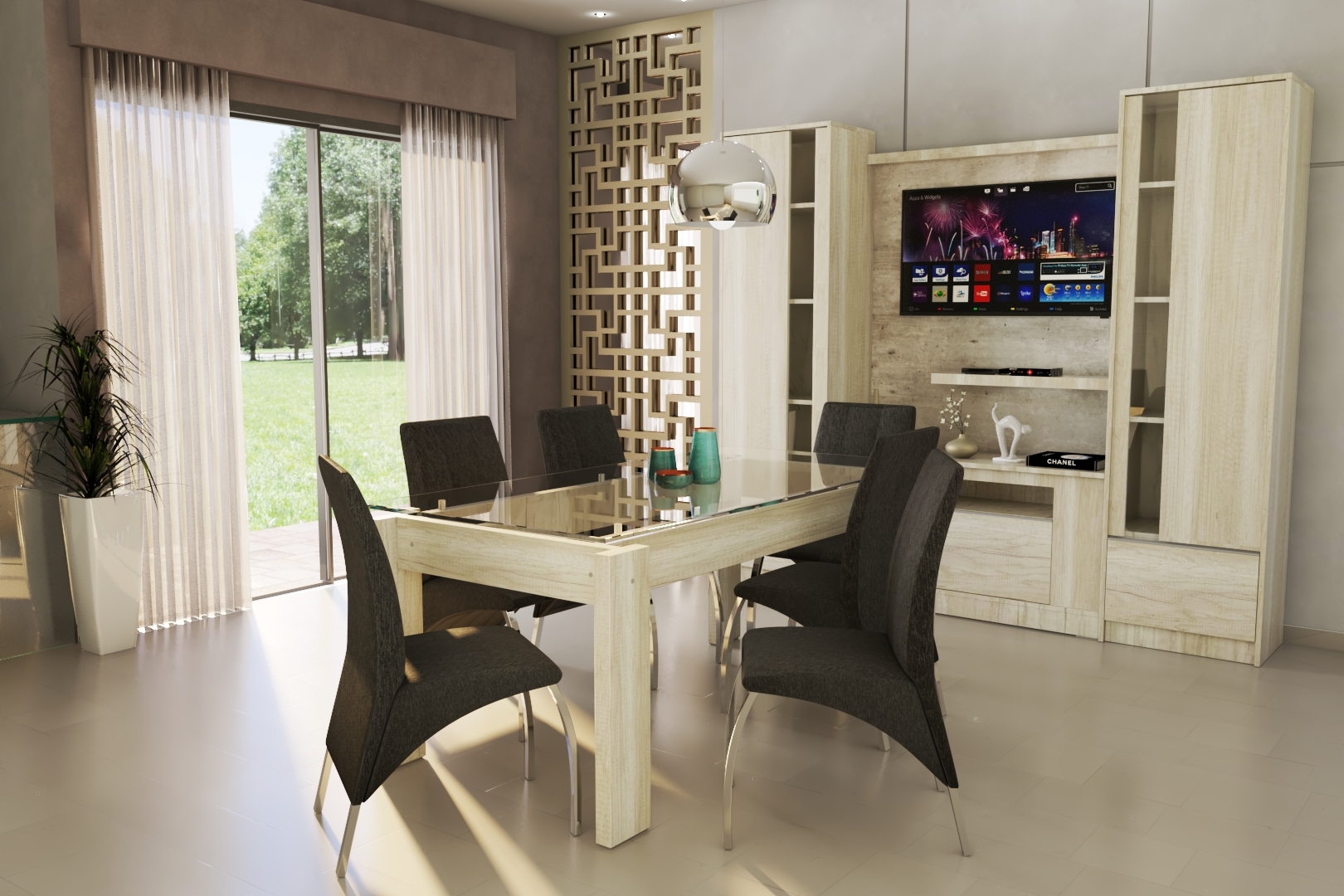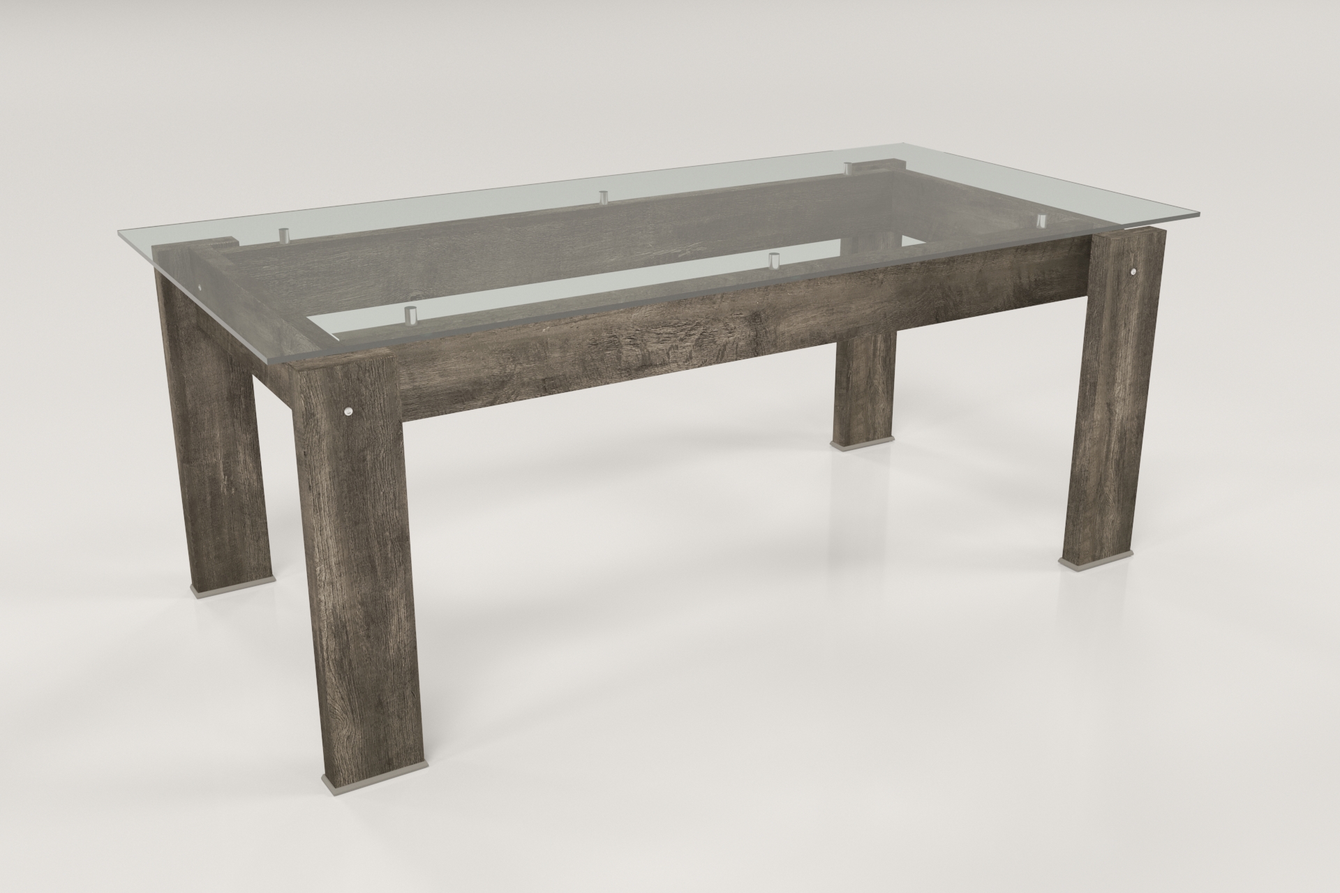 Realizada en melamina y MDF 45mm. Su característica principal es la tapa de vidrio de 10 mm que le otorga elegancia y robustez al producto.