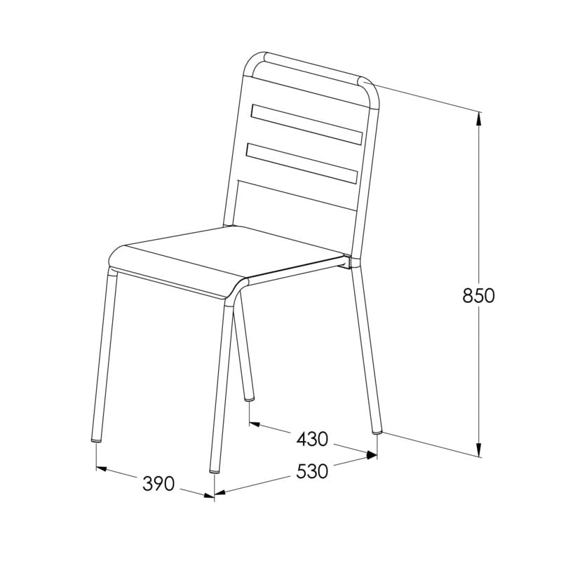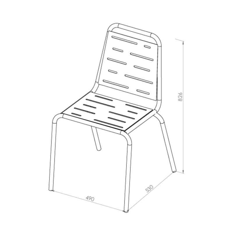 Producida en chapa de 1.6 mm y con patas cilíndricas de 2″ lo que la hace resistente y duradera al exterior. Podemos encontrarla en los colores Blanco o Negro.