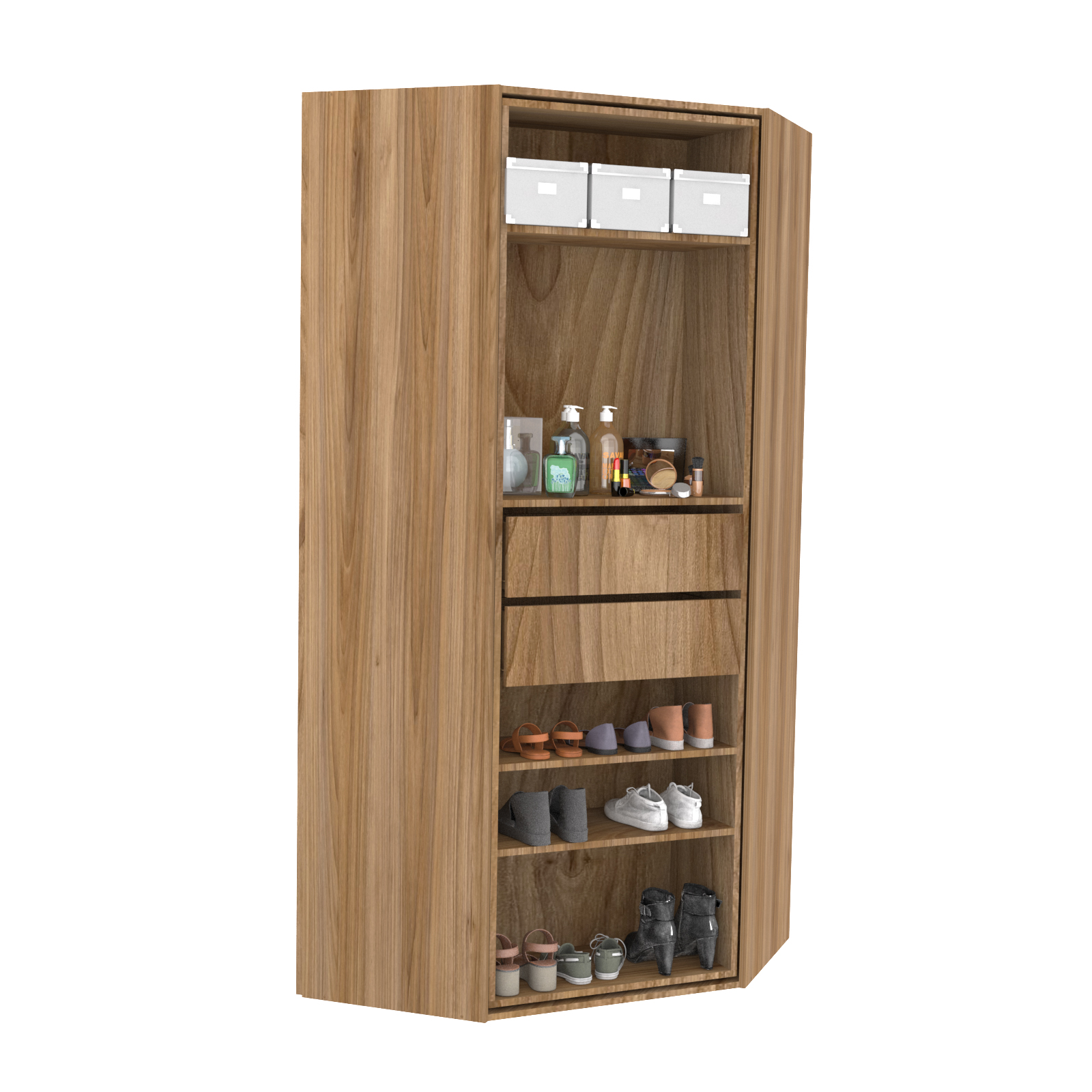 Mueble Esquinero Giratorio Para uso como Zapatero, guardado multiuso, o como Modulo Adicional para vestidores.