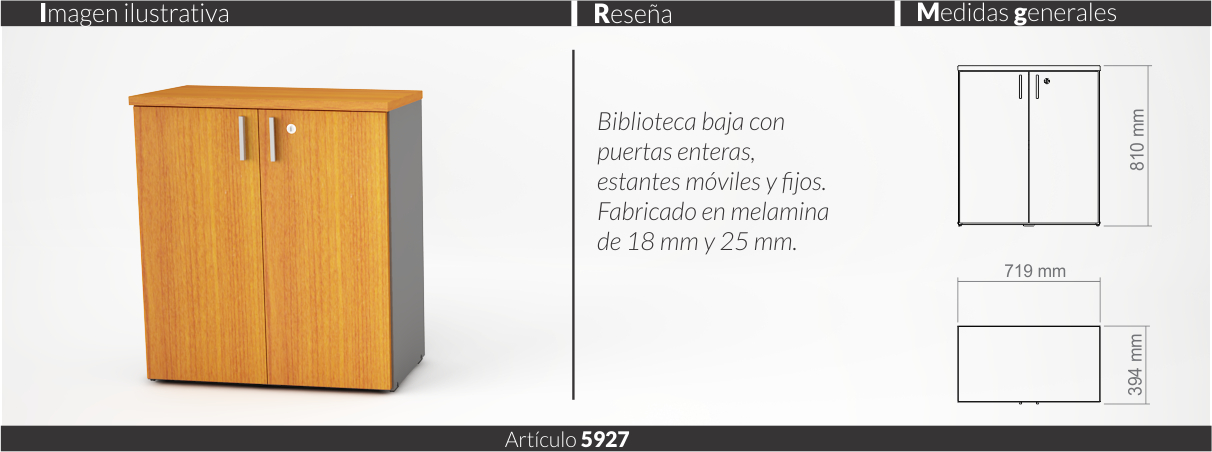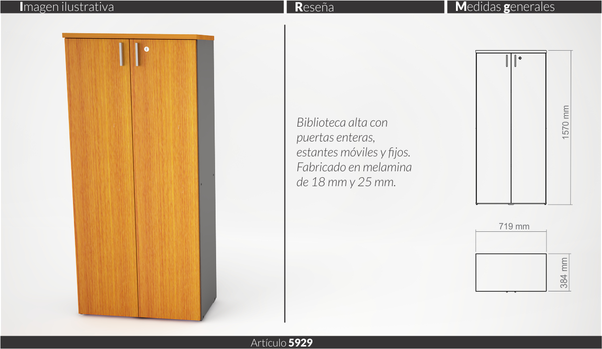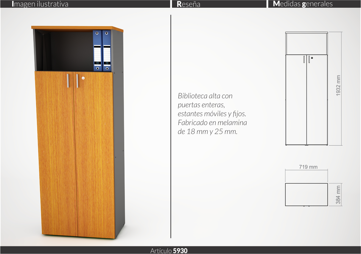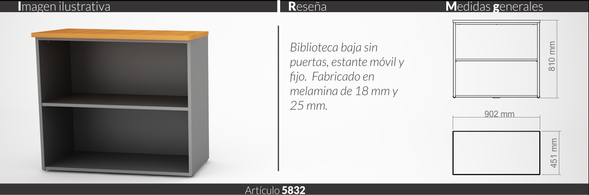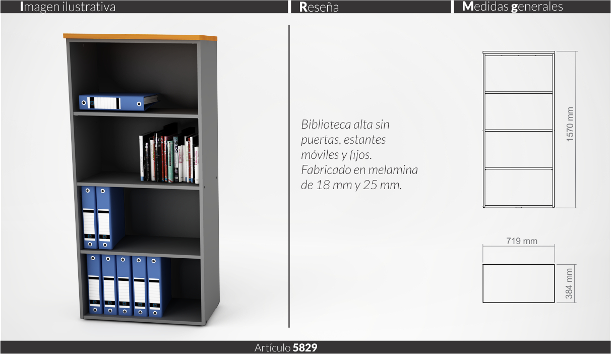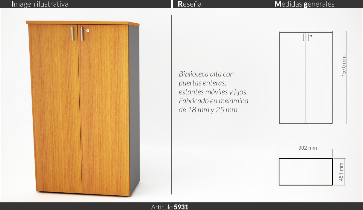 Espesores melamina cuerpo y faja 18 mm, tapas 25 mm