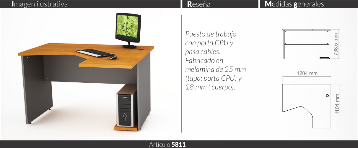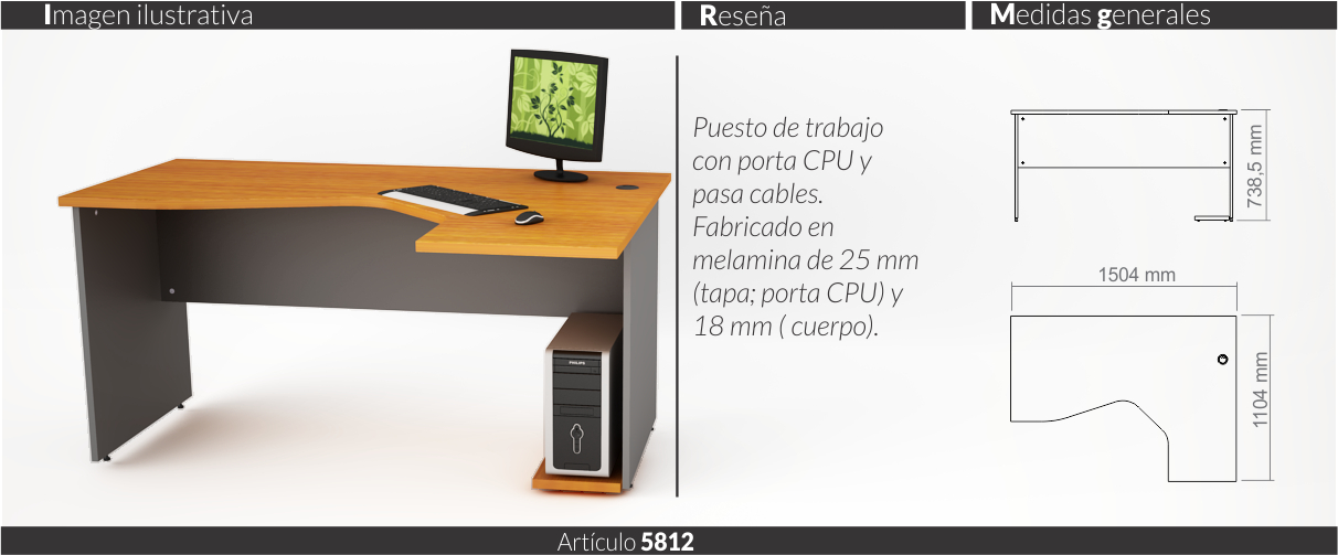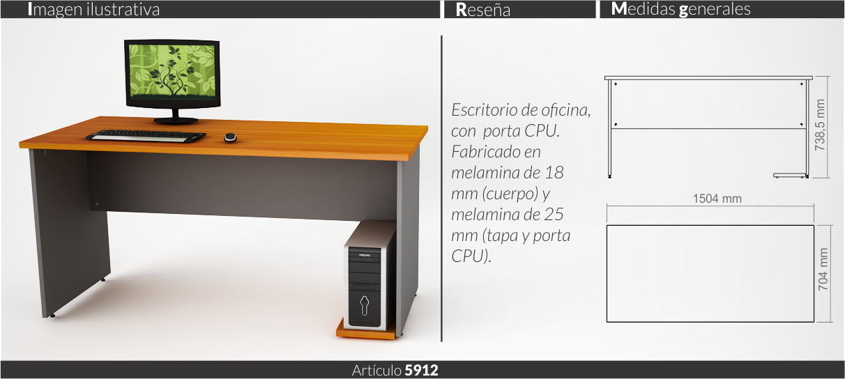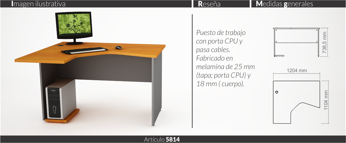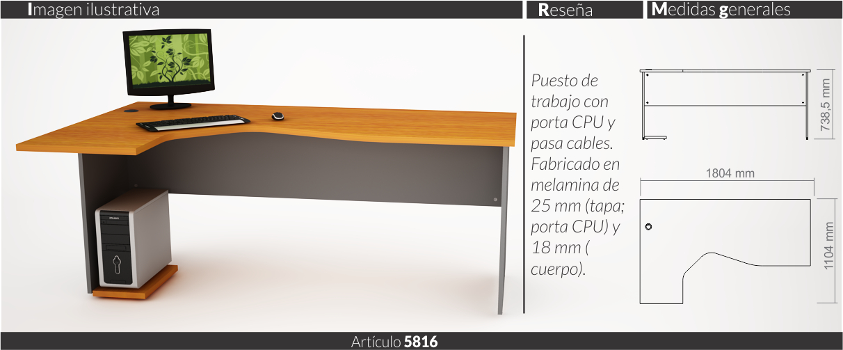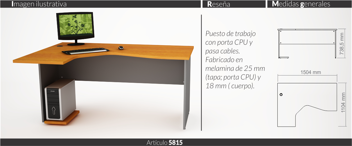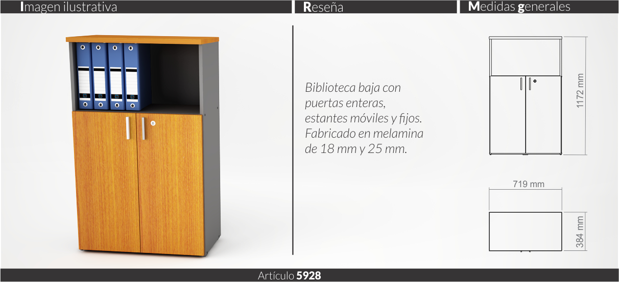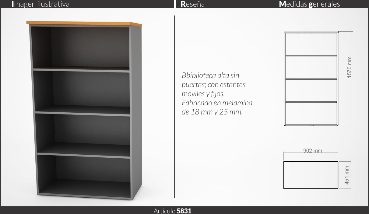 Espesores melamina cuerpo y faja 18 mm, tapas 25 mm