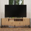 Rack para tv 65″ 2 puertas, 2 cajones y estantes. Estructura de hierro mate de 2,2cm. Cuadro de 3x3cm. Melamina de 15mm.