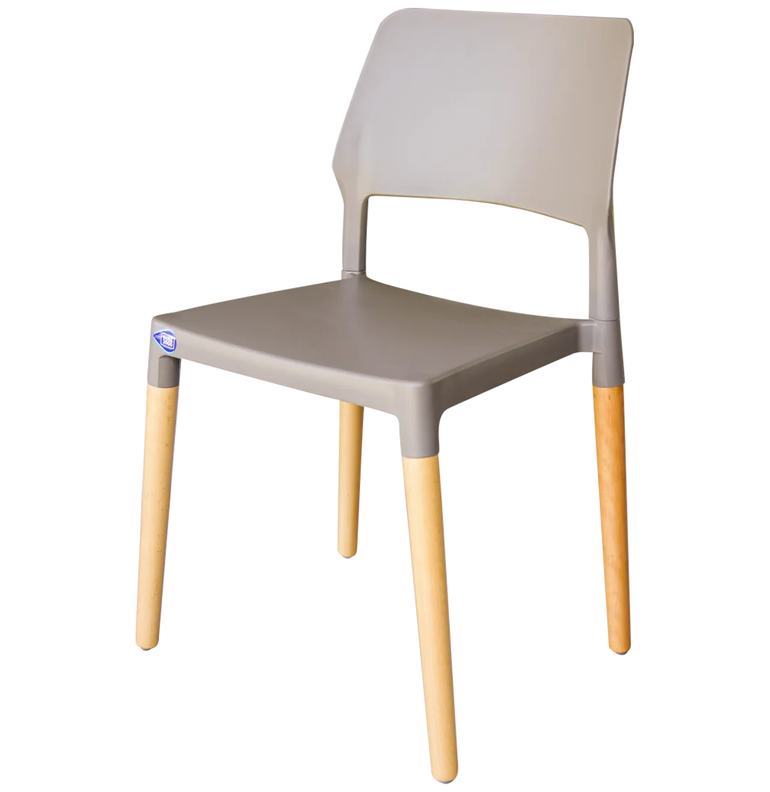 Con un diseño que combina una base plástica resistente con elegantes patas de madera de haya .