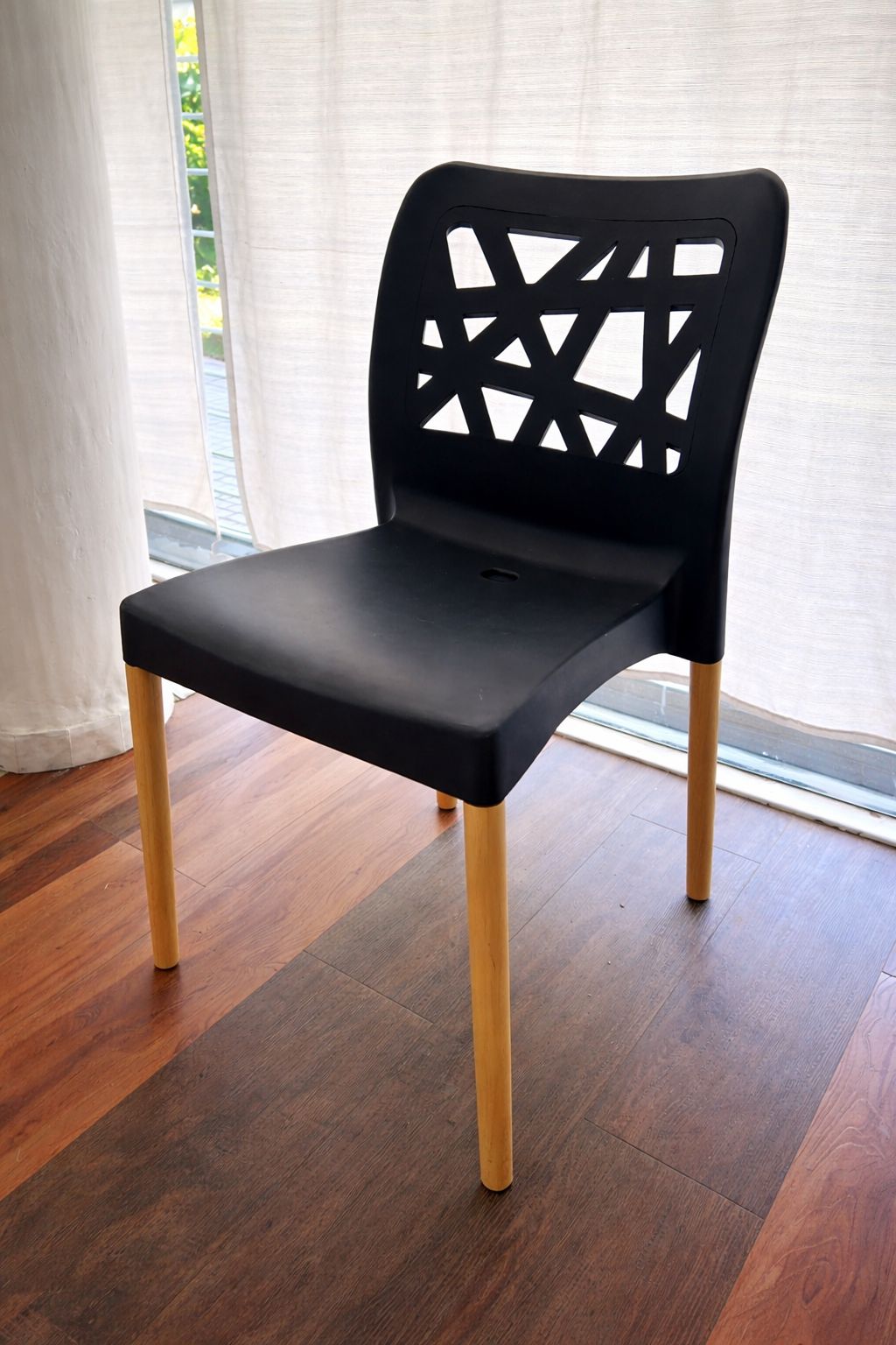 / SILLA PLASTICA PATAS DE MADERA NEGRA 1 UNIDAD